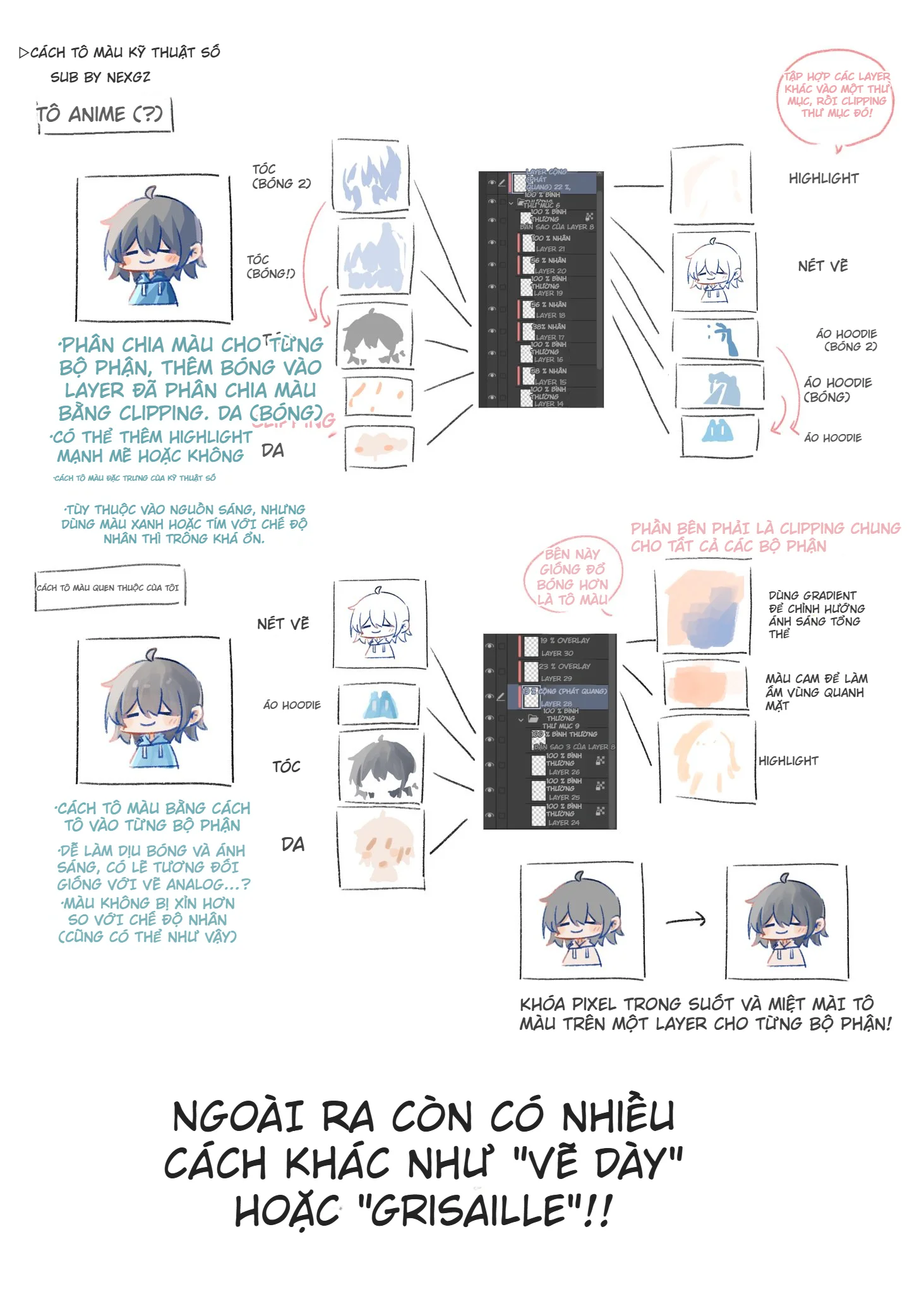 Workflow gợi ý: Base màu (layer dưới) → tạo layer mới phía trên → bật Clipping → đắp shadow/highlight thoải mái, không sợ lem.