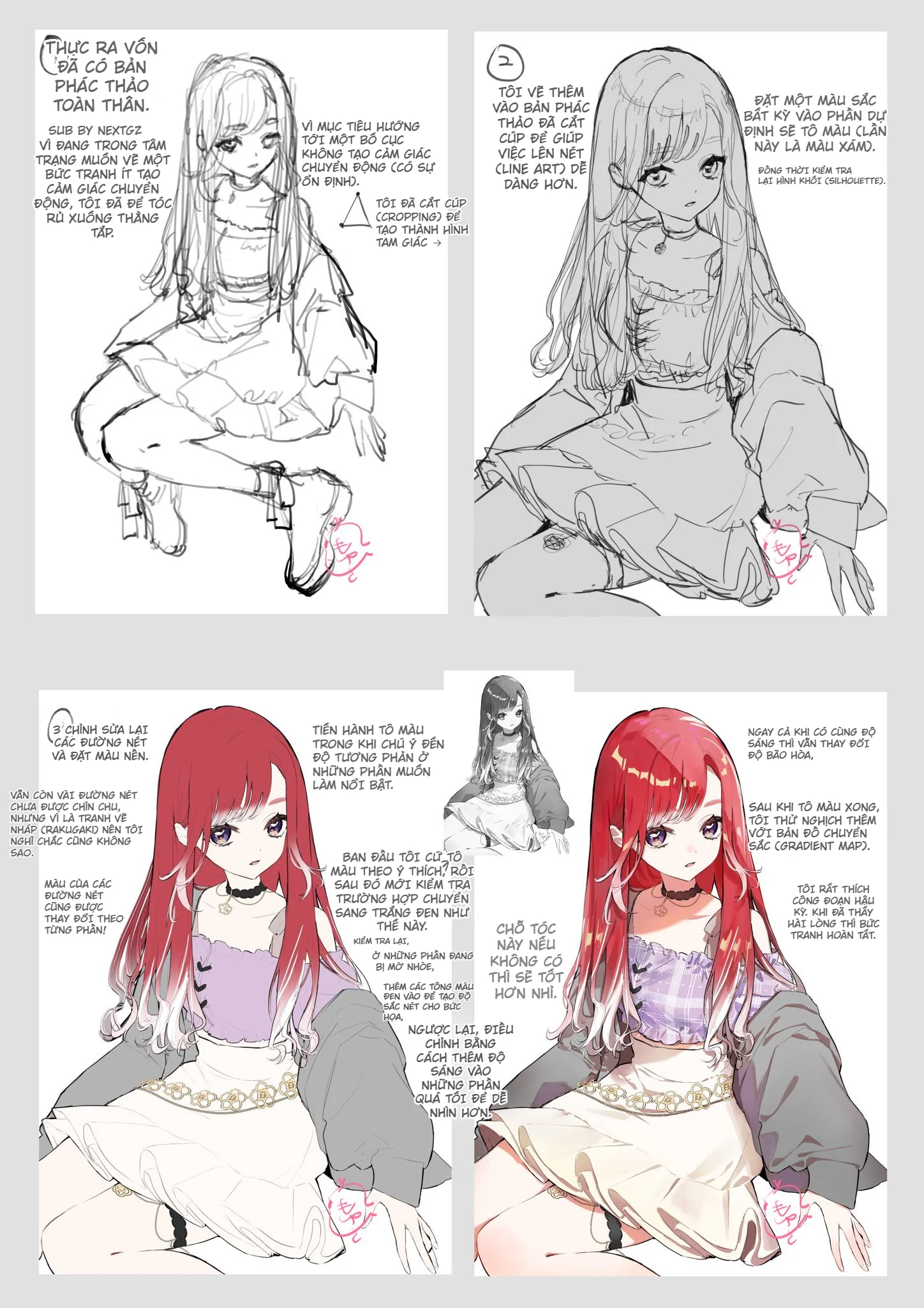 Nhiều bạn thường hỏi mình làm sao để giữ được sự ổn định từ lúc phác thảo cho đến khi lên màu hoàn thiện mà không bị "đầu voi đuôi chuột". Hôm nay mình sẽ mổ xẻ chi tiết các bước mình thực hiện bức tranh cô gái tóc đỏ này để các bạn tham khảo quy trình tư duy nhé.