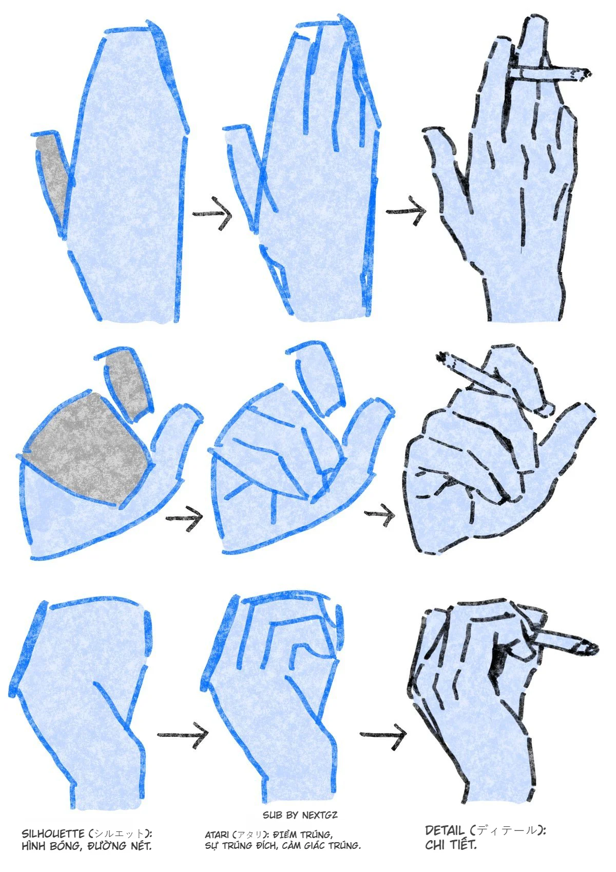 Chọn 1 pose tay + 1 biểu cảm miệng: vẽ 3 lần theo đúng thứ tự Silhouette → Atari → Detail. Mỗi lần 3 phút. Không được nhảy cóc.