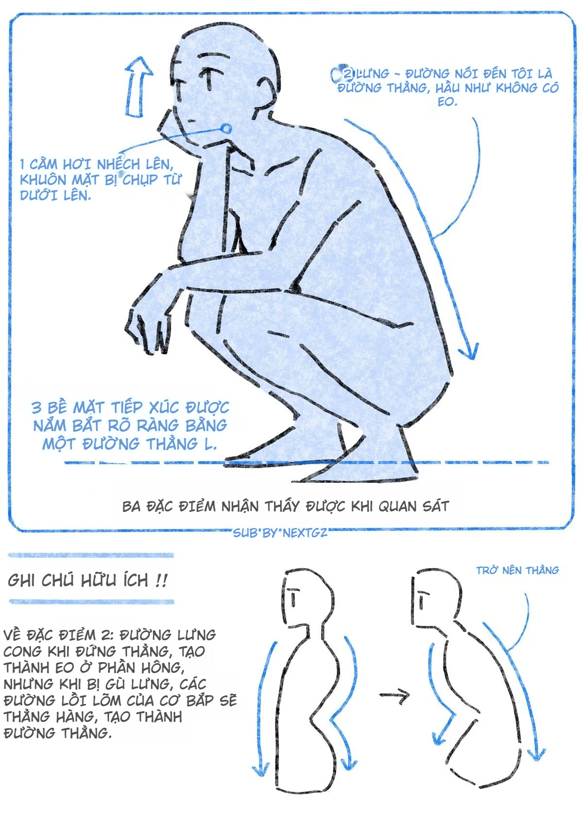 Pose ngồi xổm: tìm 3 điểm tiếp xúc chạm đất (đặt được 3 điểm là dáng đứng vững ngay).