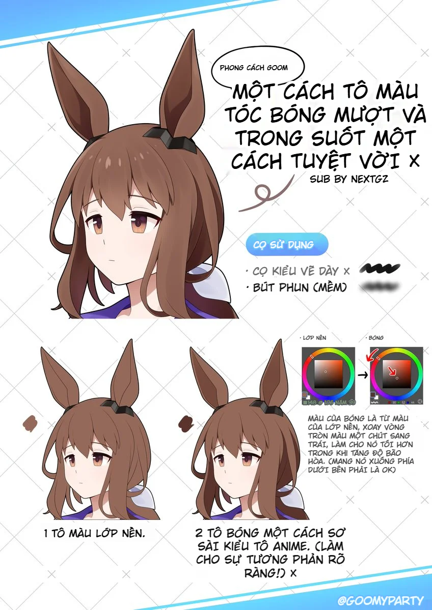 Nguyên tắc cốt lõi: Tô tóc là tô bóng, tăng độ trong suốt và ánh sáng - KHÔNG phải tô chi tiết lung tung.